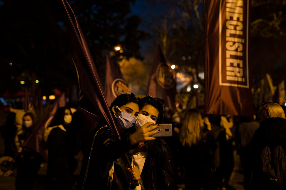 Kadınlar ve lgbti+lar olarak 8 Mart Dünya Kadınlar Günü'nde 19. Feminist Gece Yürüyüşü için Sıraselviler Caddesi'nde toplandık. Polis, geleneksel gece yürüyüşünü engellemek için Taksim Meydanı, İstiklal Caddesi ve Sıraselviler Caddesi çevresindeki yolları trafiğe kapattı. Basın açıklamasının ardından Taksim Meydanı'na yürümek istedik, polis barikatını aşamayınca Cihangir ve Tophane üzerinden Karaköy'e yürüdük.